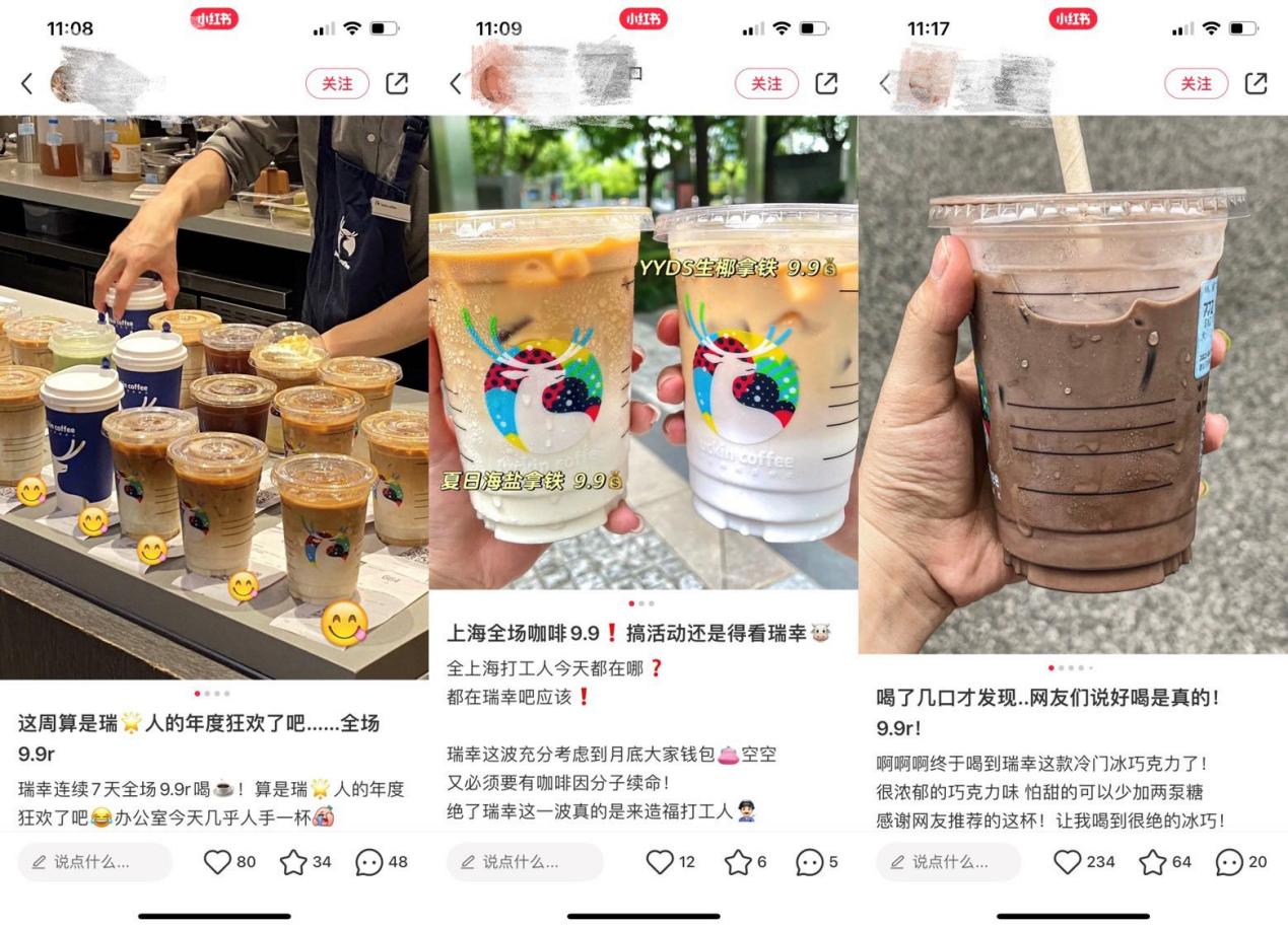 社交媒体上,有关瑞幸上海全场咖啡9.9元的笔记火了,对于咖啡有日常饮用需求的打工人,绝不能错过瑞幸这波福利,很多人表示这一周的咖啡快乐,都被瑞幸承包了。微博、小红书上总能看到种草的小伙伴们分享着他们的快乐。