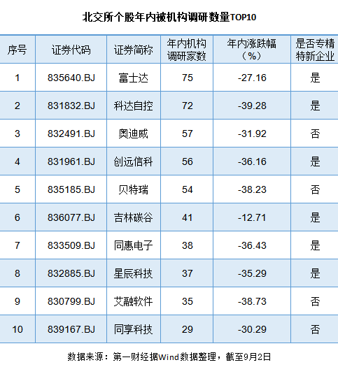 不过,长期而言,多位受访者表示看好北交所的未来发展机遇,今年以来也有多家机构进行调研。Wind数据显示,截至9月2日,有42家北交所上市公司年内合计获得779家机构调研,有14家是专精特新企业。