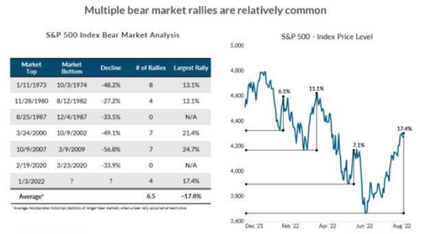 资管巨头Glenmede投资策略团队在研究了过去6轮熊市的行情特征后发现,期间平均会出现6.5次反弹行情,这往往是新的“陷阱”。“(标普500指数)从6月16日的低点反弹17%似乎与熊市反弹的特征一致,涨势逆转通胀意味着新低点将会在不远处出现。”报告提及,“虽然经济衰退尚未确认,但未来的道路将在很大程度上取决于不同的通胀前景和利率结果。”