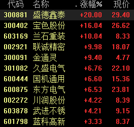 9月8日,光热发电板块涨幅居前,截至发稿,盛德鑫泰20%涨停,宝色股份涨超16%,兰石重装、联诚精密涨停,金通灵、久盛电气、国机通用等跟涨。