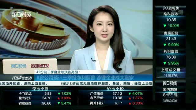 数据显示,截至9月12日,共有45家A股上市公司预报了前三季度业绩情况。其中,有8家公司预计前三季度净利润同比增长100%以上。涉锂企业表现抢眼,雅化集团、天力锂能等公司均表示,报告期内,新能源市场需求旺盛,公司经营利润大幅度提升。