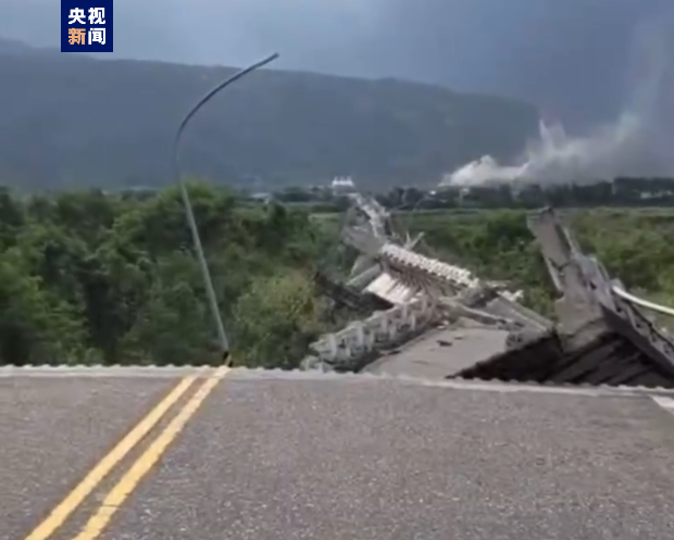 图为:台湾花莲县发生6.9级地震,据当地民众报告,花莲玉里镇的高寮大桥桥面已经断成数截。