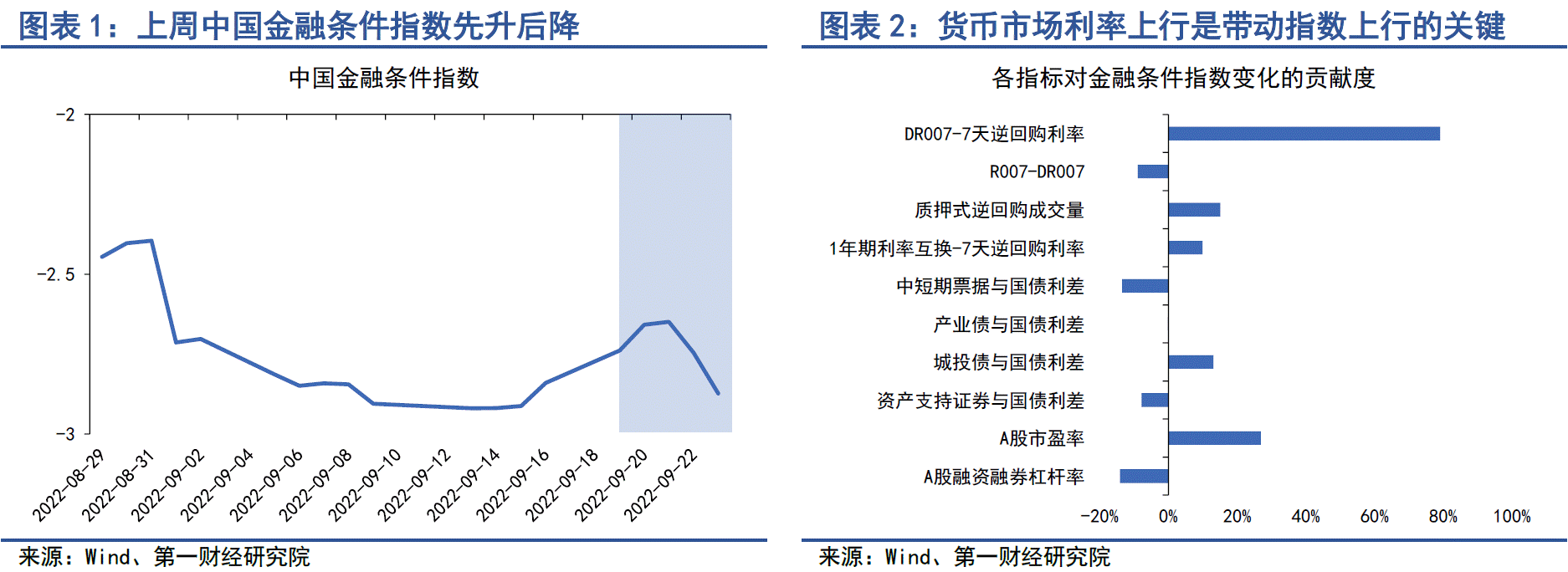 在9月19日至9月23日当周,第一财经研究院中国金融条件日度指数均值为-2.73,较前一周上升0.16,年内指数下降1.71。