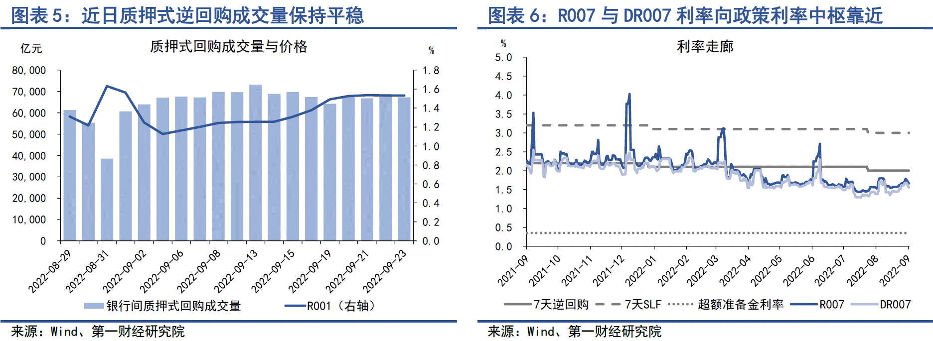 上周,银行间质押式回购成交量保持平稳,均值保持在6.6万亿元左右。隔夜回购利率R001持续上行,由9月19日的1.49%上升至9月23日的1.53%。R007与DR007进一步向政策利率中枢靠近,两者周内均值分别为1.72%和1.63%,较前一周上升10bp和11bp。