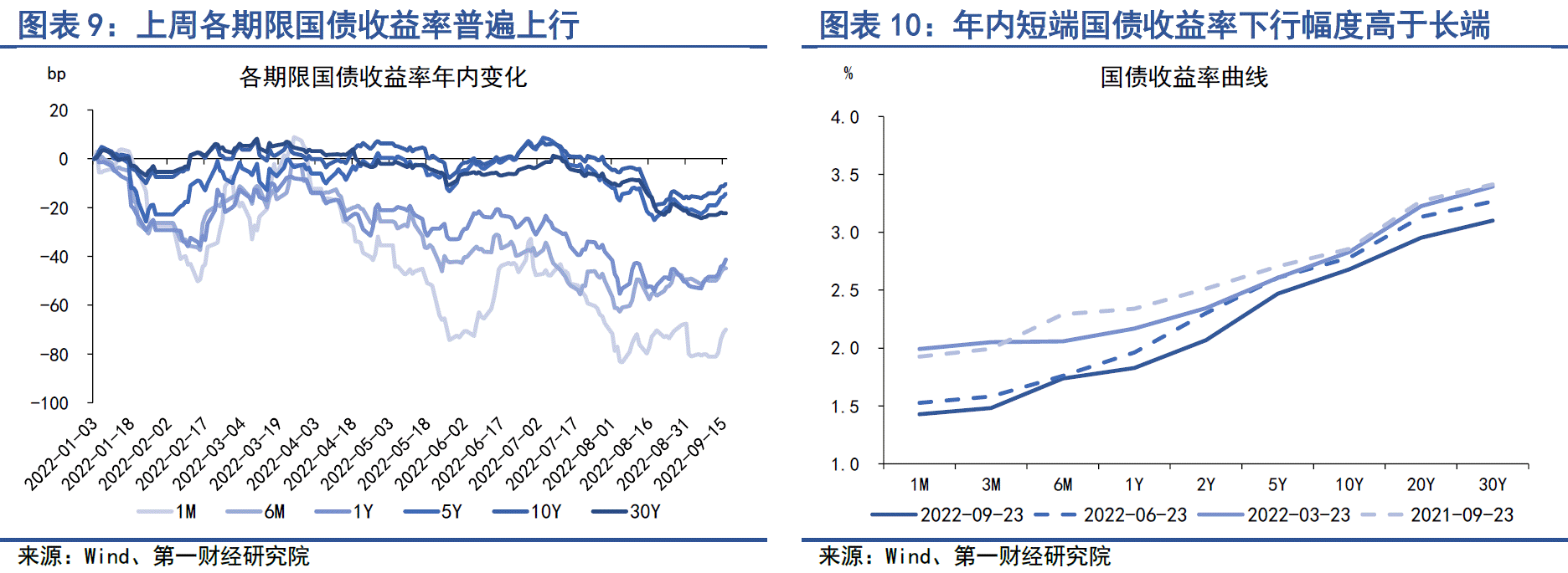 上周,短端国债收益率明显上升,中长端国债收益率基本保持平稳。从短端来看,受货币市场流动性收紧影响,1月期、6月期与1年期国债收益率分别上行19.75bp、5.21bp和4.24bp;从中长端来看,5年期和10年期国债收益率分别上升0.50bp和0.77bp,30年期国债收益率下降0.68bp。