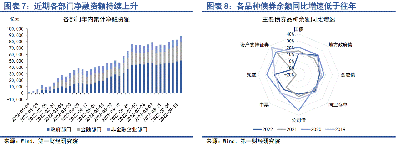 上周债券市场发行与净融资规模较前一周明显上升。自地方政府专项债发行完毕之后,国债成为政府部门债券发行的新主力。在金融部门债券发行中,政策银行债发行规模快速上升,实行准财政功能。