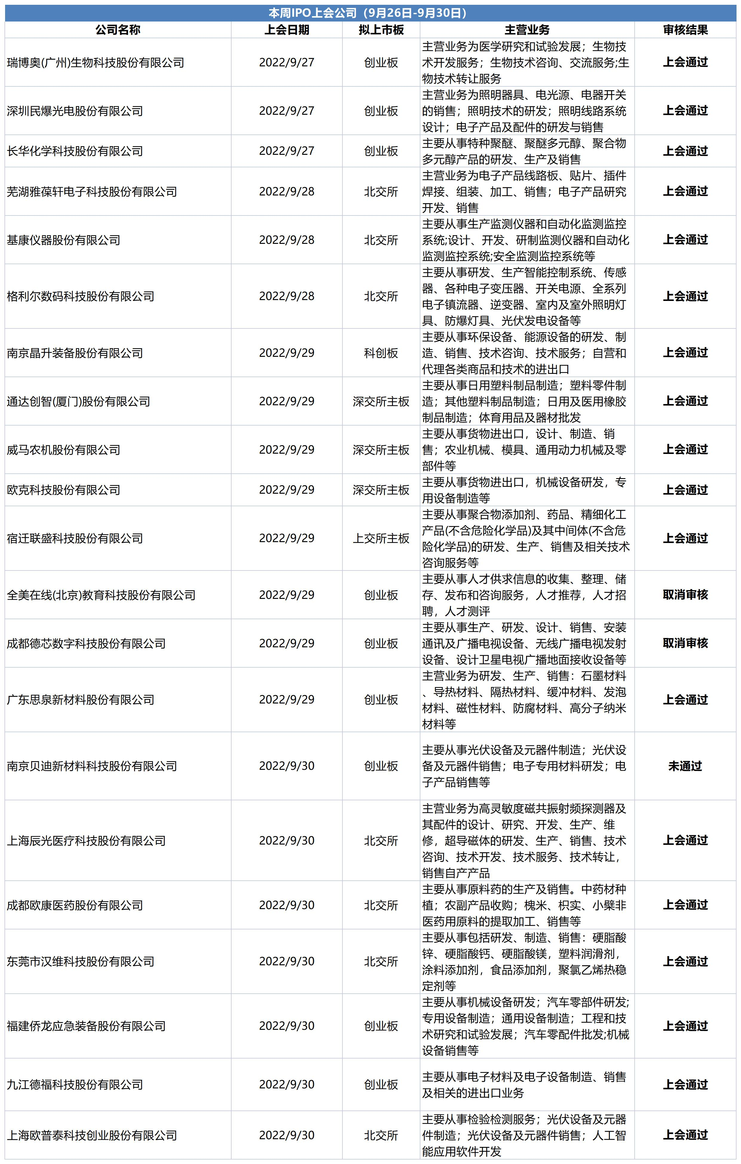 【本周IPO上会公司】