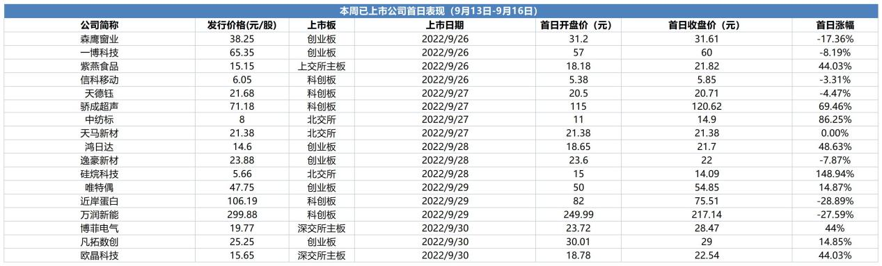 【本周上市公司首日表现】