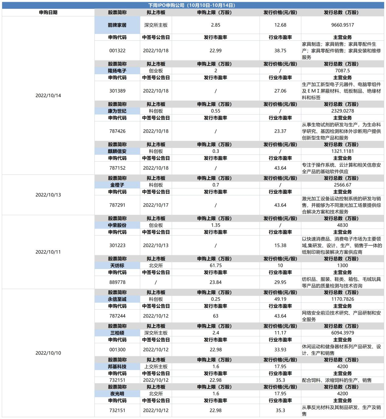 【节后首周新股申购】