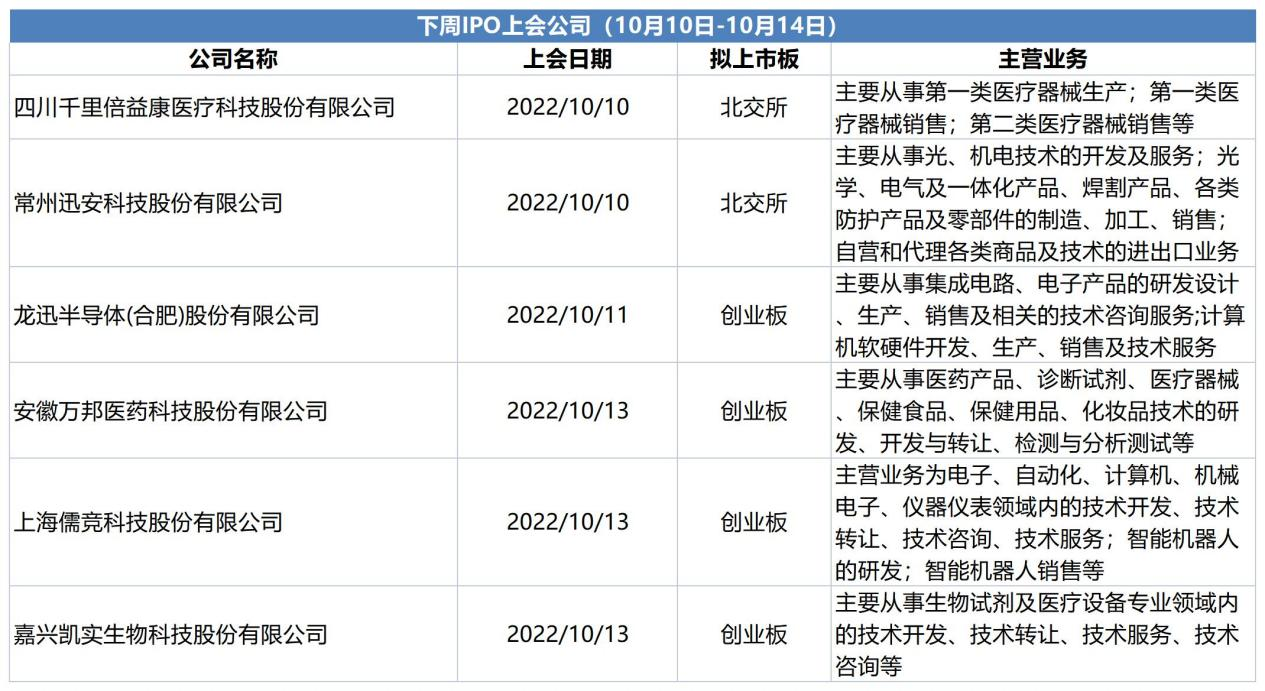 本周(9月26日-9月30日)及节后首周(10月10日-10月14日)IPO动态如下:
