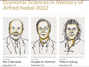 北京时间10月10日下午,瑞典皇家科学院诺贝尔奖评审委员会决定,将该年度的经济学奖授予美联储前主席本·伯南克(Ben S. Bernanke)、美国芝加哥大学教授道格拉斯·戴蒙德(Douglas W. Diamond)和美国圣路易斯华盛顿大学教授菲利普·迪布维格(Philip H. Dybvig)三位经济学家,以表彰他们在银行与金融危机研究领域的突出贡献。