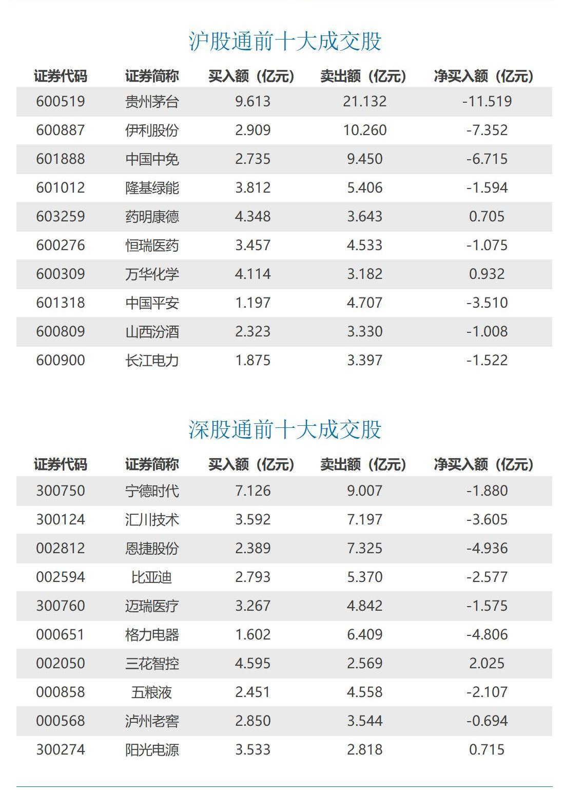 10月20日,北向资金全天净卖出62.23亿元,其中,沪股通净卖出37.44亿元,深股通净卖出24.80亿元。前十大成交股中,三花智控、万华化学、阳光电源净买入额位列前三;当天机构净卖出前三的股票分别是贵州茅台、伊利集团、中国中免。