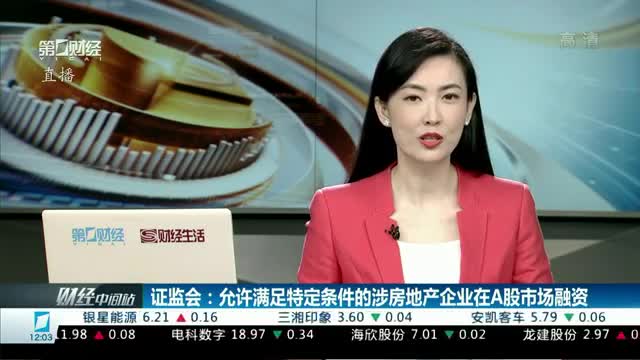 近期,人民银行、银保监会等部门/推出阶段性/调整差别化住房信贷政策等系列措施。据媒体从证监会获悉,对于涉房地产企业,证监会允许部分存在少量涉房业务/但不以房地产为主业的企业在A股市场融资。