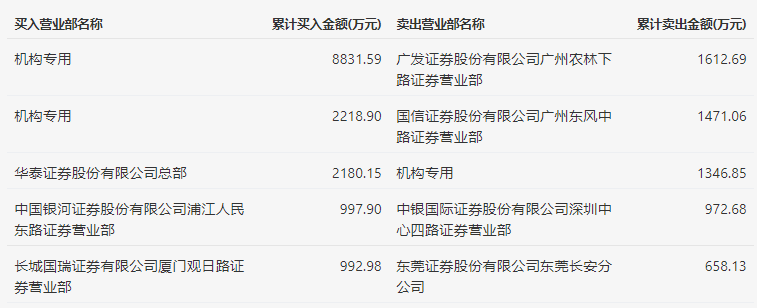 盘后龙虎榜数据显示,2家机构买入1.11亿元,1家机构卖出1346.85万元。