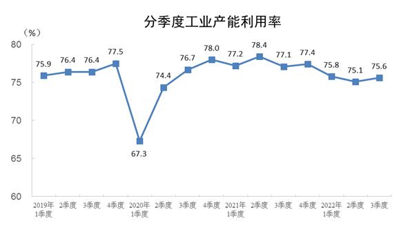 10月24日,国家统计局发布的数据显示,三季度,全国工业产能利用率为75.6%,比上年同期下降1.5个百分点,比上季度回升0.5个百分点。