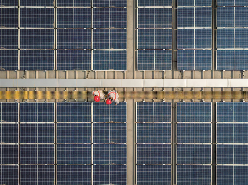 在该园区,所有屋顶都配备了容量为9兆瓦的光伏发电设备,总计10万平方米的光伏屋顶占据了园区总面积的1/3以上,且已并网发电,为园区提供源源不断的绿色能源。