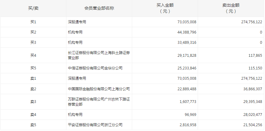 盘后龙虎榜数据显示,深股通买入7303.5万元并卖出2.75亿元,两机构净买入7787.81万元,一机构净卖出2792.35万元。