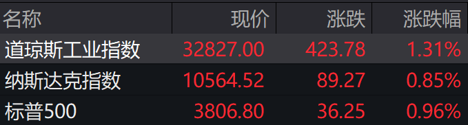 当地时间周一,美股三大指数集体收涨,道指涨1.31%,纳指涨0.85%,标普500指数涨0.96%。