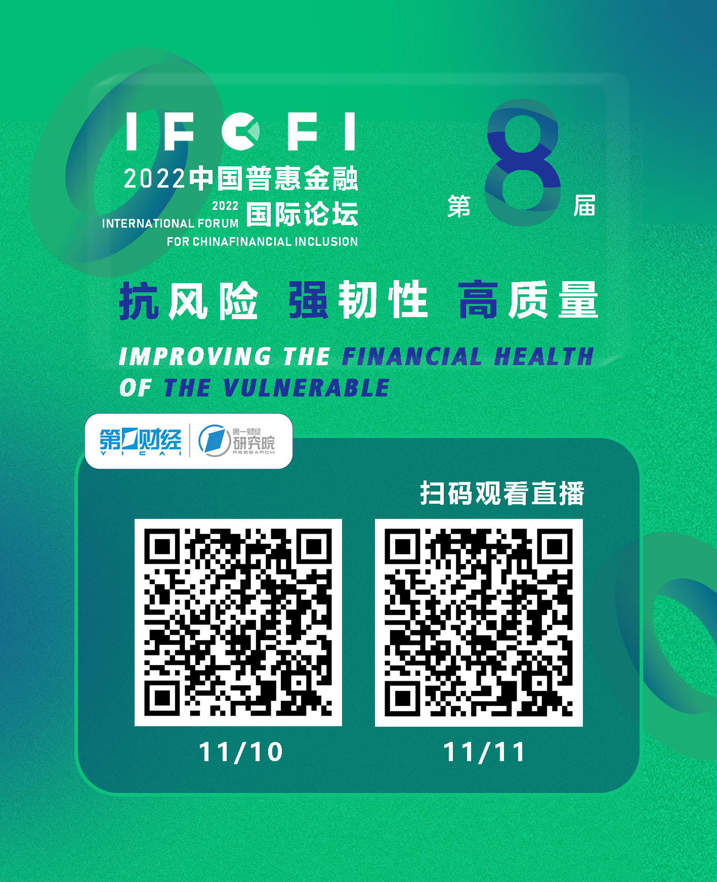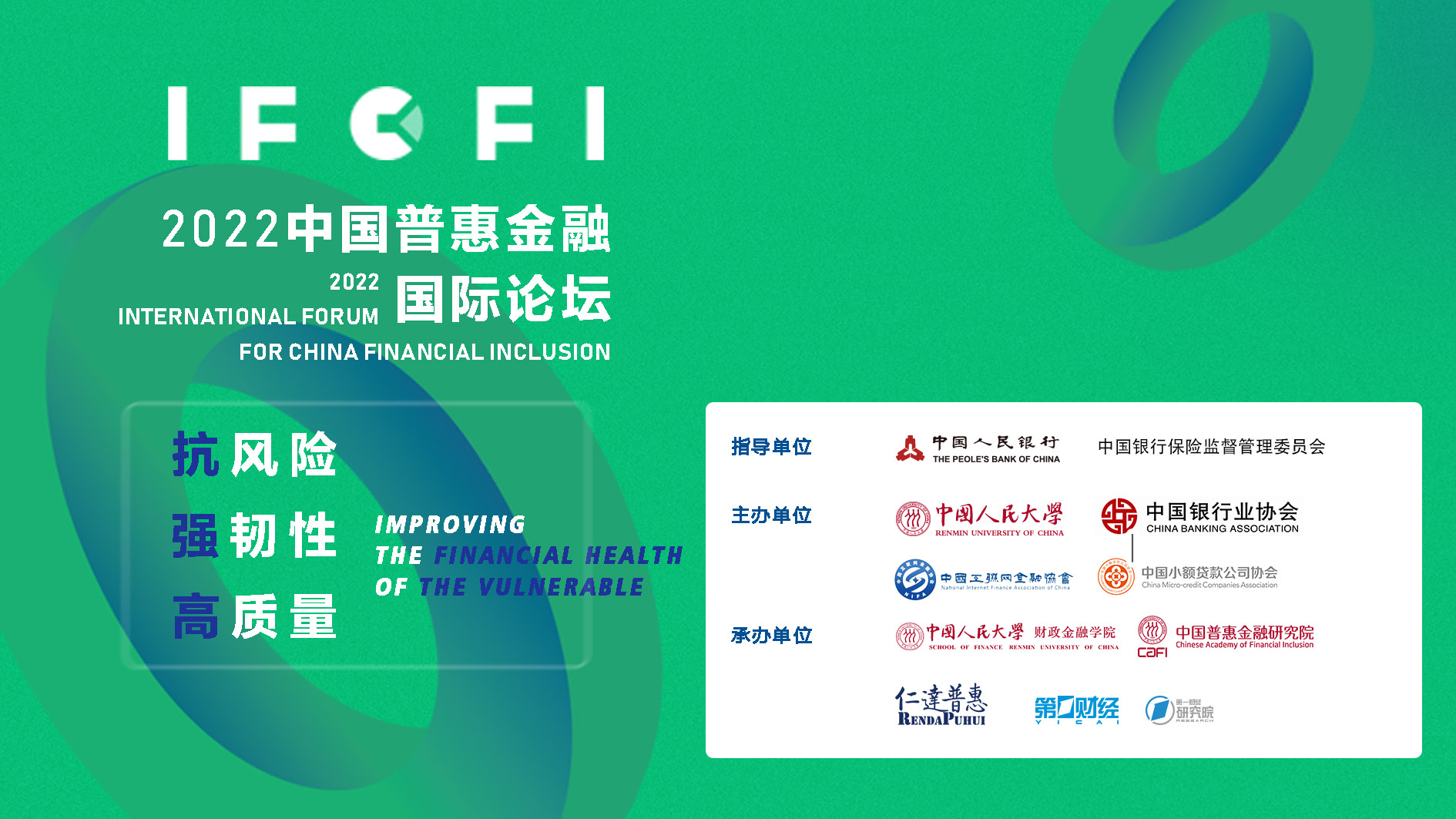 中国普惠金融国际论坛(IFCFI, International Forum of China Financial Inclusion)是国内普惠金融行业层次最高、影响力最大的活动,自2015年起举办至今,由中国人民银行、中国银保监会指导,中国银行业协会、中国互联网金融协会、中国小额贷款公司协会及中国人民大学主办。2022年,第一财经研究院作为论坛的承办方之一,希望以“普惠金融促进共同富裕”为主题,与论坛各参与方一起探讨如何在新格局下构建普惠金融的“抗风险、强韧性、高质量”发展,促进共同富裕目标。