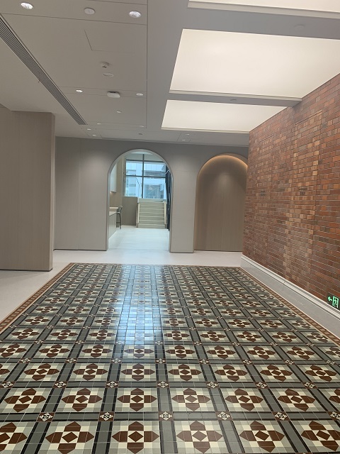 走进该校区内部,第一层为红墙、地砖设计,与香港大学红墙交相呼应。据现场人员介绍,该校区实际上从去年已经开始招生,今年的招生工作从9月开始,会持续到明年3月,现在学生已经开始来上课。