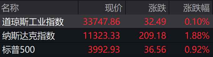 当地时间上周五,美股连涨两日。截至收盘,道指微涨0.1%,标普500指数涨0.92%,纳指涨1.88%。