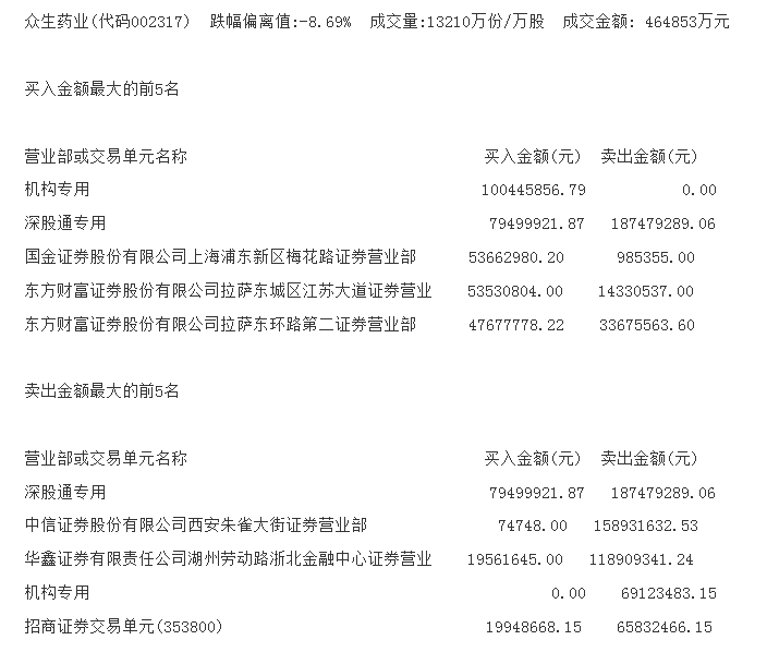 11月16日,众生药业低开低走放量大跌。截至收盘收报于34.37元,跌9.48%,全天成交金额46.5亿元。