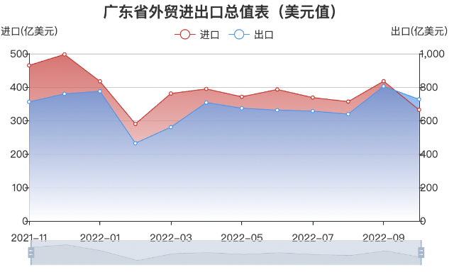 前十月,深圳市进口总额约12034亿元,下降6.7%;东莞进口总额约3953亿元,下降16.59%;佛山进口总额约898亿元,下降2.5%。