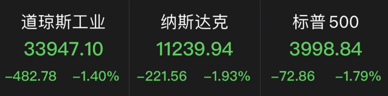 大型科技股悉数走弱,其中苹果跌0.80%,微软跌1.89%,谷歌跌0.95%,亚马逊跌3.31%,特斯拉跌6.37%,Meta跌0.86%。