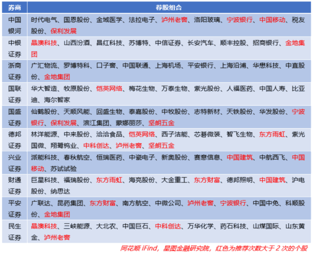 其次12月各大券商也如期推出了看好的标的,截至12月5日,32家券商公布了12月的荐股组合,共计285只,以下是部分券商12月荐股组合。