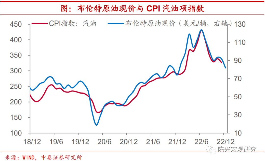 11月能源分项同比增速由17.6%回落至13.1%,较上月回落速度加快,环比由1.8%下行至-1.6%,在10月小幅抬升后再度延续下行趋势。布伦特原油价格变化与CPI能源价格走向一致,11月油价较10月小幅回落,而CPI能源项由于去年高基数效应降幅较大。12月原油现价较11月持续回落,叠加高基数效应,预计未来能源回落幅度或将继续扩大。