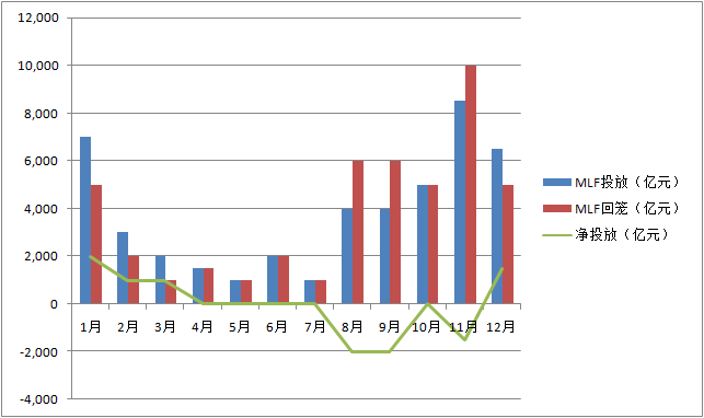 10月等量续做,11月缩量续做,到了12月,MLF操作转为超额续做。实际上,在降准落地的大背景下,市场对本月MLF操作颇为关注。此前有不少观点认为MLF缩量概率较大,不过考虑当前债市表现,不排除央行予以等量续做MLF。