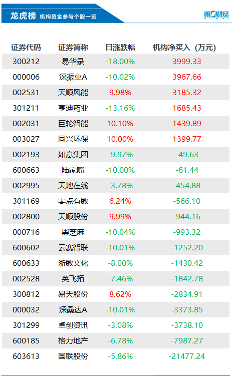 2月20日龙虎榜中,共20只个股出现了机构的身影,有6只股票呈现机构净买入,14只股票呈现机构净卖出。当天机构净买入前三的股票分别是易华录、深振业A、天顺风能;当天机构净卖出前三的股票分别是国联股份、格力地产、卓创资讯。
