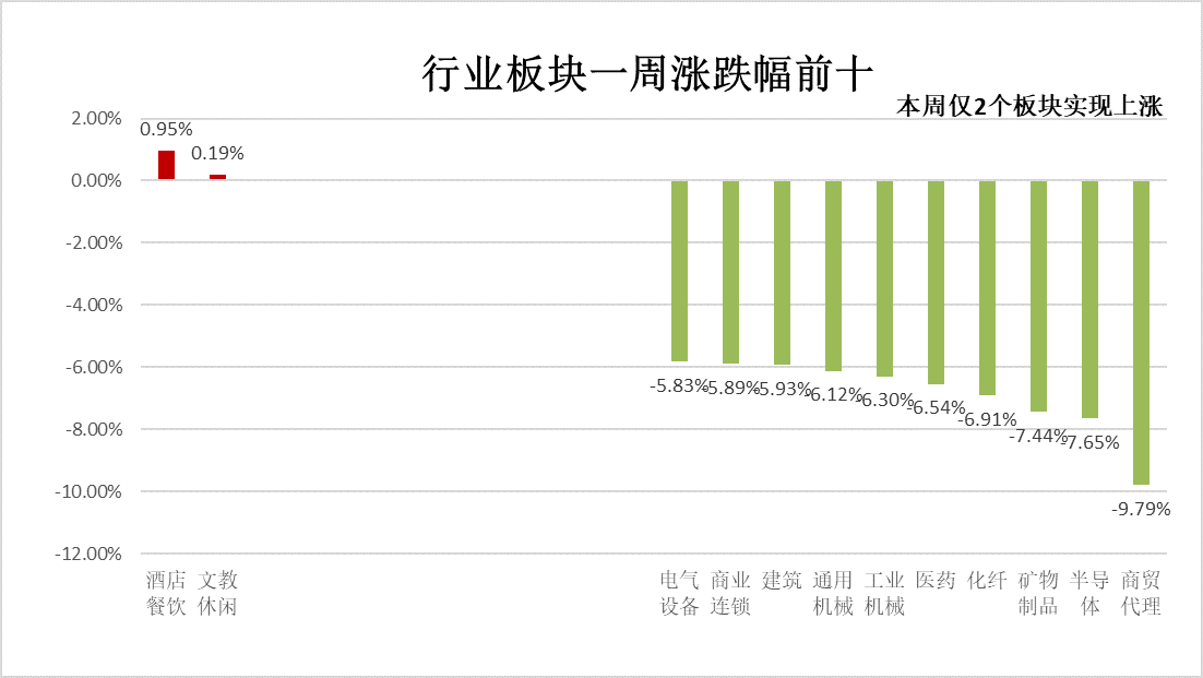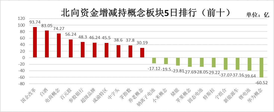 本周(12月19日-12月23日)A股市场震荡下跌,上证指数周跌3.85%;深证成指周跌3.94%;创业板指周跌3.69%。板块方面,本周实现上涨的仅有酒店餐饮、文教休闲、水产品和供销社四个板块。跌幅居前的包括仿制药、肝炎概念、新冠药概念、熊去氧胆酸、化纤、矿物制品、半导体、商贸代理等。资金方面,市场下跌的同时北向资金反向加仓。证券时报·数据宝统计,本周北上资金净流入43.53亿元;其中沪市明显优于深市,沪股通净流入49.2亿元,深股通净流出5.66亿元。其中酿酒行业获净流入84.71亿,银行、中药、保险等获净流入超过15亿。值得一提的是,数据宝统计,本周共10个行业获得北上资金持股量增长,美容护理、通信、食品饮料行业加仓较多,持股数量周环比增幅超过1%。部分周期行业遭到北向资金连续减持,煤炭、化工、公用事业、电力设备等9个行业近三周持股量连续下降,其中农林牧渔减仓幅度最多,持股量累计下降6.92%。