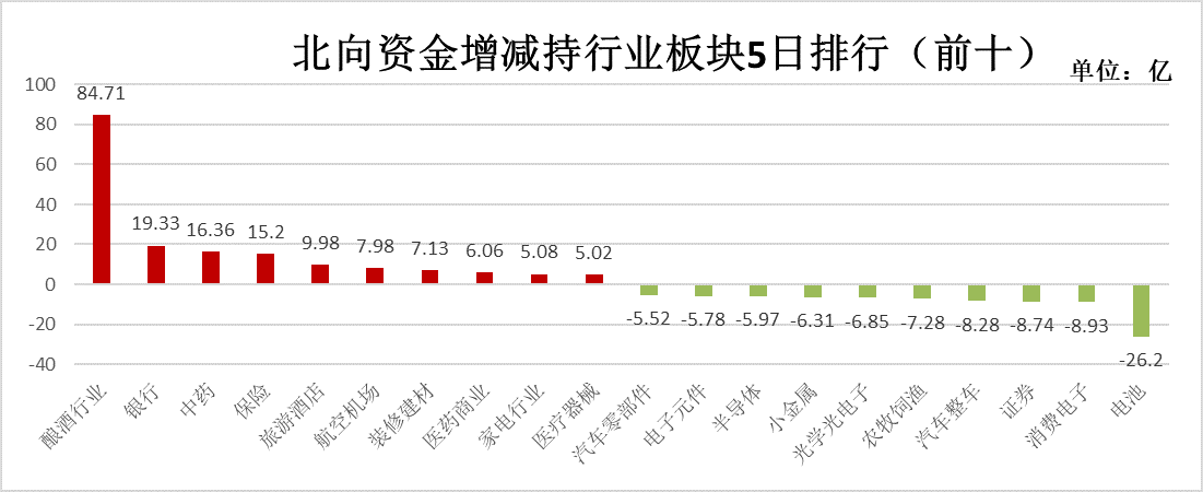 本周酿酒板块表现不佳,但值得关注的是,本周北上资金极其罕见地对几乎所有的白酒股进行了加仓,净买入前三位的均为白酒股,分别是五粮液、贵州茅台、水井坊。