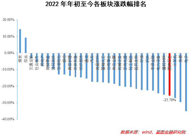 年初以来,受美联储加息、俄乌冲突、疫情频发等多重因素影响,A股整体表现颇为低迷。Wind数据显示,从2022年年初至2022年12月20日,申万一级31个行业仅有煤炭和综合两个板块实现了正增长,其余29个板块皆为负增长。