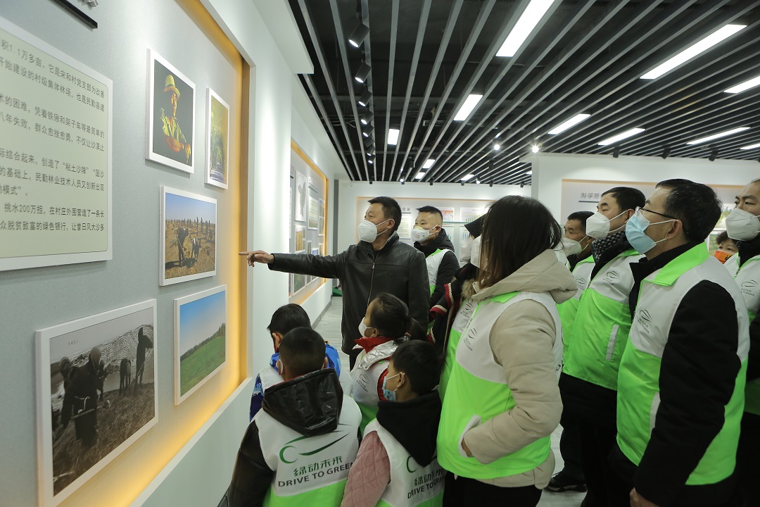 志愿者家庭参观民勤防沙治沙纪念馆,听石光明讲治沙故事