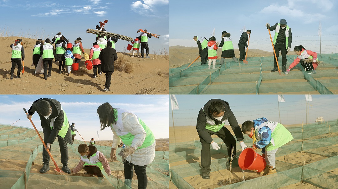 志愿者家庭携手石老传人共同在腾格里沙漠种下绿色希望