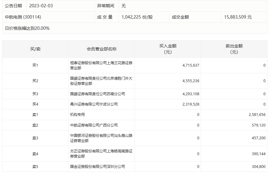 中航电测今日发布异动公告称,公司股价连续两个交易日内日收盘价格涨幅偏离值累计超过30%,属于股票交易异常波动。公司近期经营情况及内外部经营环境未发生重大变化。