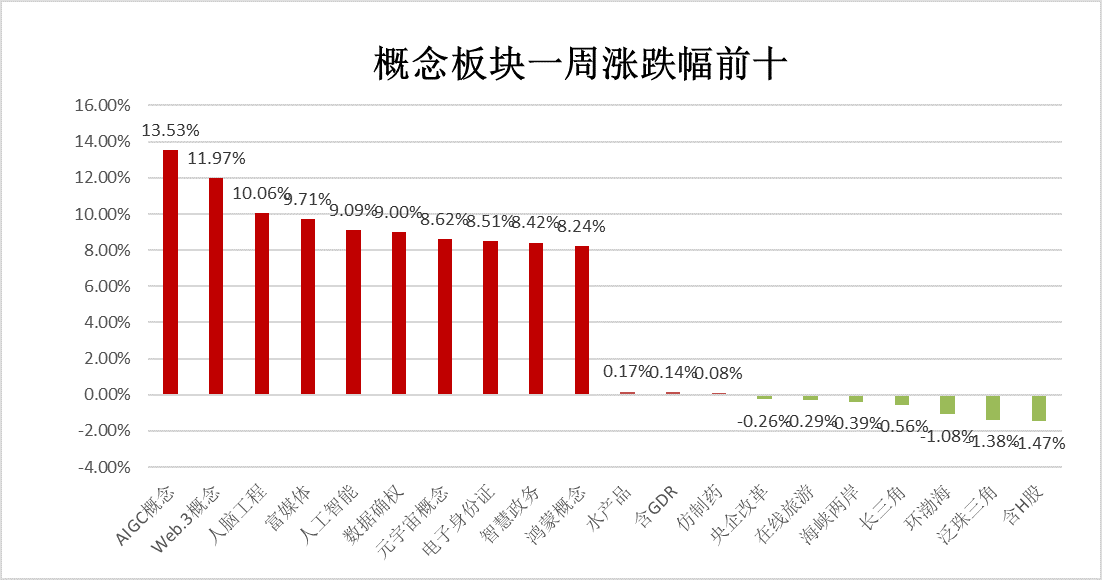 本周白酒概念股表现不俗。机构认为,白酒行业长期消费升级趋势不变,2023年消费场景和消费意愿有望逐步恢复,复苏主线清晰,整体呈现弱动销和慢复苏到逐步加快的态势,当前板块长期价值显现。
