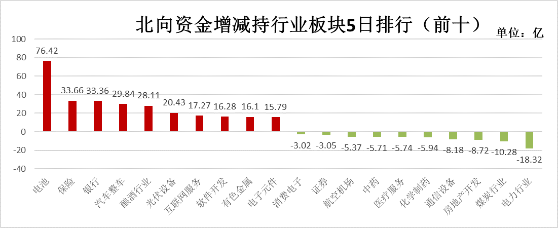 展望后市,平安证券认为,短期来看,北上资金持仓占比提升较多的消费和房地产值得跟踪;中长期看,电力设备等持仓绝对值已达到近15%,景气度有望维持高位。广发证券也认为,北上资金快速大幅流入A股后,消费、科技类的行业往往能够持续领涨,其中频繁出现在涨幅前五的一级行业主要有农林牧渔、电力设备等。北上资金边际偏好改善幅度最大的行业,在北上资金阶段性成为市场重要的主导要素后,往往能够获得超额收益。