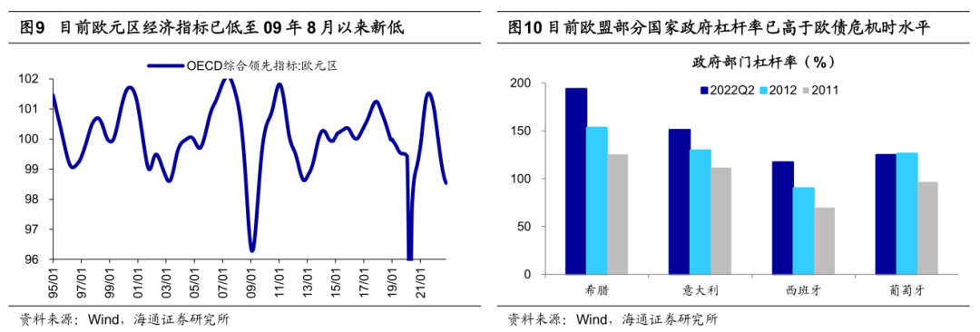 不过,在上一轮欧债危机后欧盟已经建立了欧洲金融稳定机制(EFSM),旨在为需要援助的国家提供流动性支持,因此当前欧元区金融体系的抗风险能力已有所提升。并且22年6月15日时欧央行召开了紧急会议,专门讨论如何应对再次出现的碎片化风险。但鉴于当前高利率环境下欧洲经济仍在加速下滑,那么部分脆弱国家的主权债务风险仍需警惕。