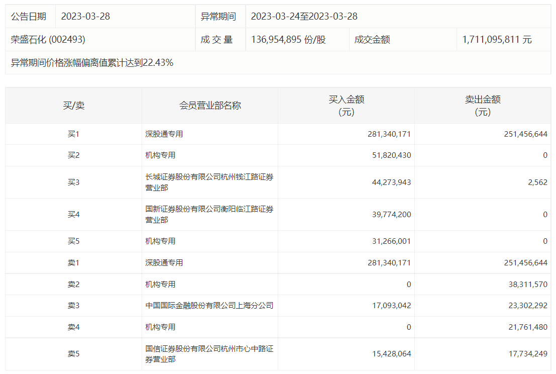 3月28日,荣盛石化开盘即一字涨停,截至收盘,该股报14.2元,涨停板上封单达150万手,近三日累涨逾22%。