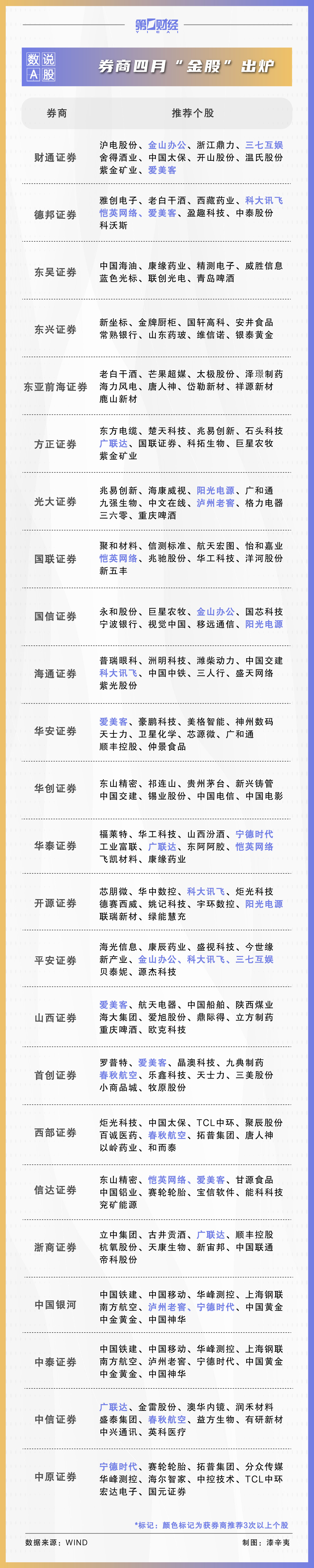 3月A股市场横盘震荡,沪指月内累计跌0.21%。4月如何寻找机会?截至4月2日,有26家券商公布了4月月度投资组合,涉及消费、金融、科技等多个领域。
