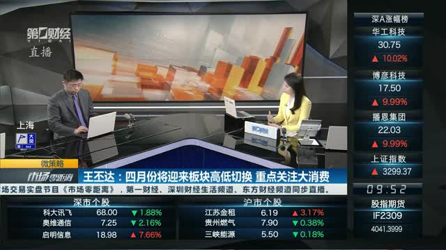 东海证券王丕达表示,昨日热点板块继续上攻,低位板块也出现放量,但大盘却止步3300点,需警惕短期放量滞涨。同时,四月份将迎来板块高低切换,建议重点关注大消费。