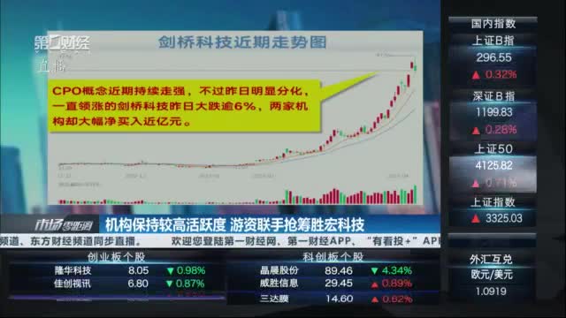 龙虎榜显示,昨日多只创历史新高的个股获机构买入。其中泛微网络获机构买入近2亿,上海电影获机构买入1.54亿,华中数控获机构买入超6000万,剑桥科技获机构买入超9000万,萤石网络获机构买入超8000万。机构卖出方面,两只PCB概念股沪电股份和胜宏科技分别遭机构卖出2.55亿和1.17亿。同样是PCB概念的胜宏科技,昨日大涨逾17%,该股遭机构卖出却获中信证券上海溧阳路和国泰君安上海江苏路两家一线游资席位联手买入。