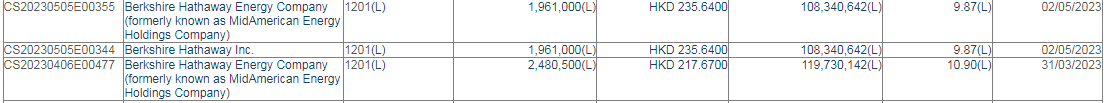 据港交所文件,伯克希尔哈撒韦公司在5月2日出售了196.1万股比亚迪股份,平均减持价格为每股235.64港元,持股比例下降至9.87%。