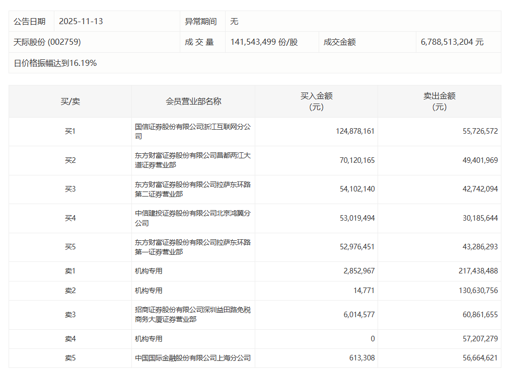 天际股份今日涨3.66%,有3家机构专用席位净卖出4.02亿元