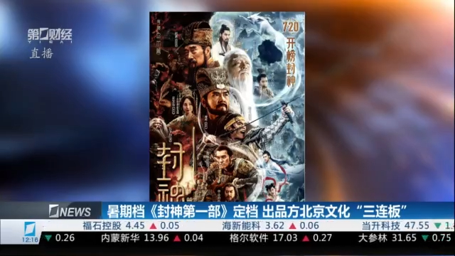 6月6日,电影《封神第一部》官宣定档7月20日。影片采取三部连拍模式进行制作,三部影片分别定名为《封神第一部:朝歌风云》、《封神三部曲之魔道争锋》、《封神三部曲之封神天下》。今天早盘,该片出品方北京文化再度涨停,已连续三连板。