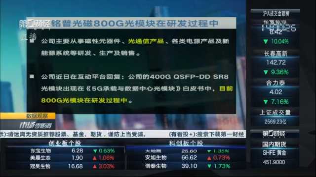 CPO概念股持续走强,截至发稿,东田微、罗博特科20CM涨停,铭普光磁涨停,仕佳光子、华工科技、光库科技、光迅科技、源杰科技等跟涨。