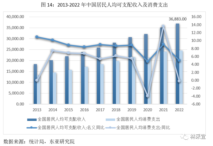 过去十年,我国居民消费有所增长,但在国民经济中的占比仍远低于国际平均水平;随着居民人均收入水平的提高,我国人均消费支出在不同消费门类均有所增加;由于收入水平和生活习惯的差异,城镇与农村消费结构及其变化也存在较大差异。